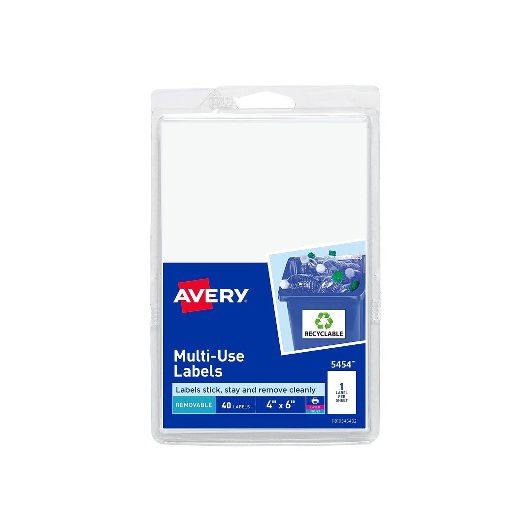 Avery TrueBlock Laser/Inkjet Shipping Labels, 4" x 6", White, 1 Label ... These shipping labels make your most important messages stand out Individual labels measure 4"H x 6"W White color for an attractive look Features a permanent-adhesive backing for a secure bond One label per sheet, 20 sheets per pack; 20 total labels Compatible with laser and inkjet printers for maximum flexibility